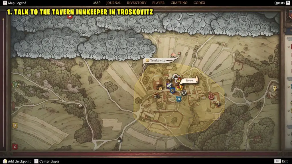 To start the “Invaders” side quest, head to the tavern in Troskowitz and speak with the innkeeper, Betty. She’ll inform you that a group of Cuman soldiers is seated at a table in the tavern. She wants you to serve them food and collect payment from them.