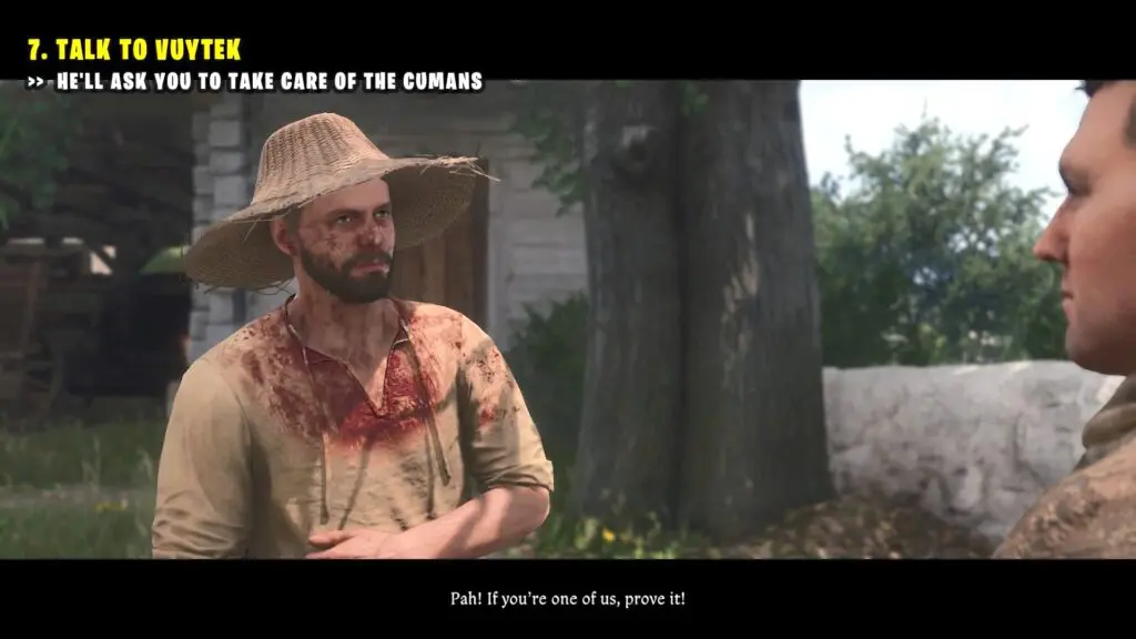 Speak with the injured NPC, Vuytek. He will ask you to deal with the Cumans to settle the conflict between him and Henry.