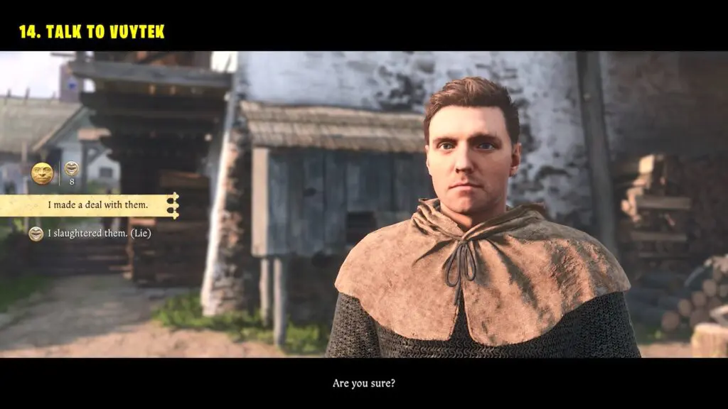 At this moment, another NPC named Vuytek will start arguing with the Cuman soldiers. You can try to diffuse the situation by choosing these dialogue options:
