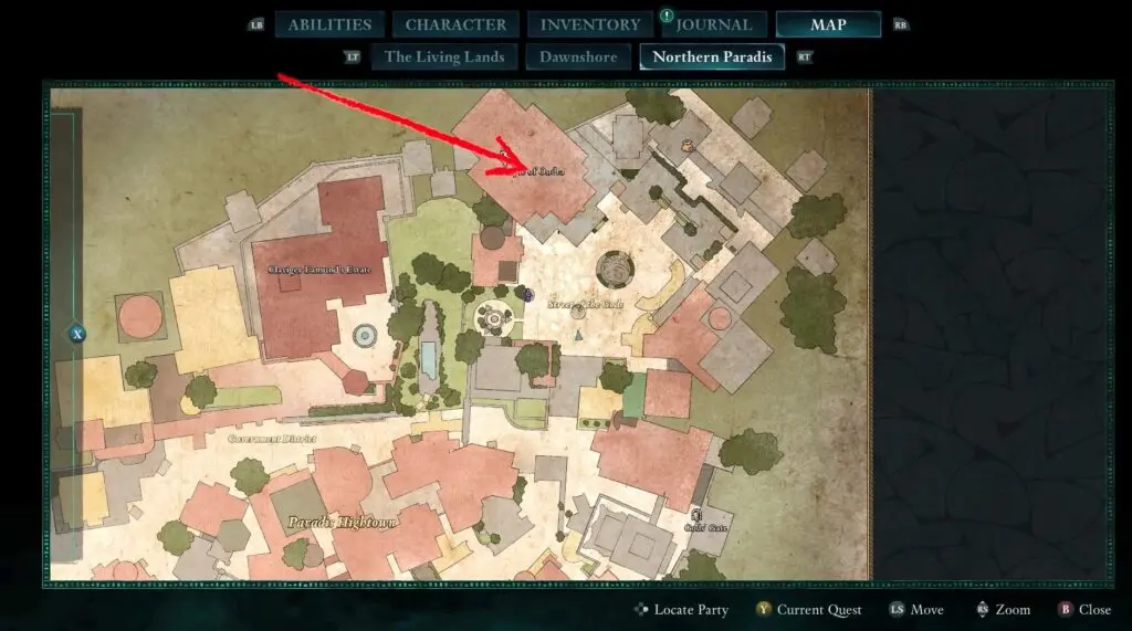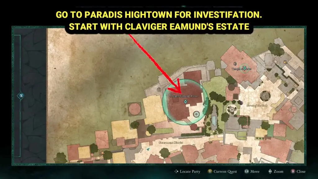 To begin the investigation, go to the Claviger’s Estate in Northern Paradis.