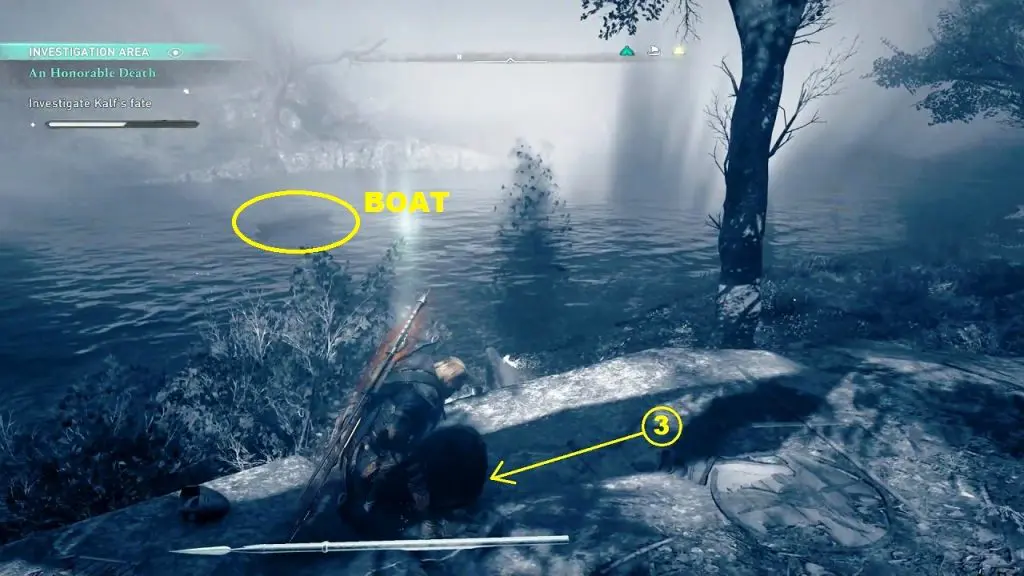 Now swim south. Go past the boat to reach the third investigation point as shown in the pictures below.