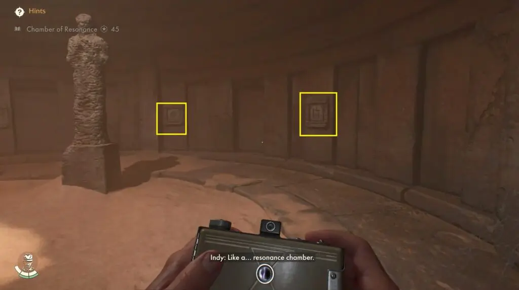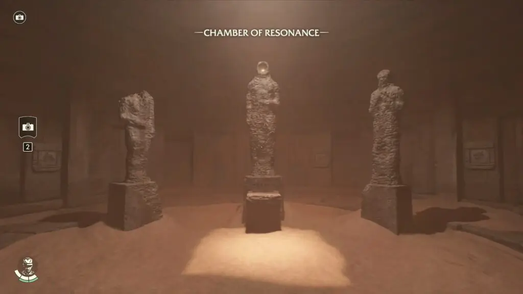 To solve the Chamber of Resonance puzzle, pull out your camera and start taking pictures of the stone plates on the wall. As you take the photo of the second stone plate from the right side. The game will prompt you to open Laura’s Journal.