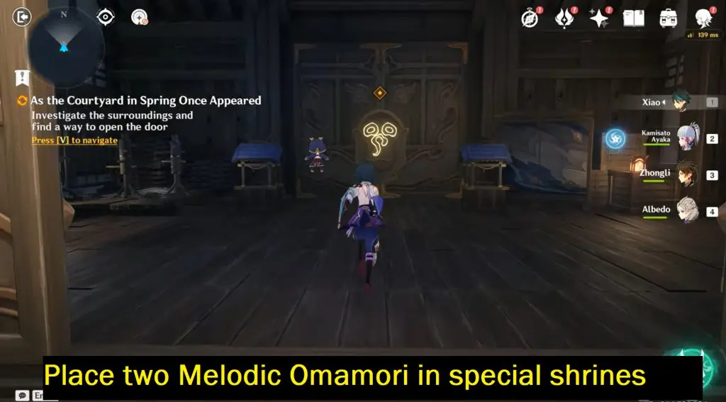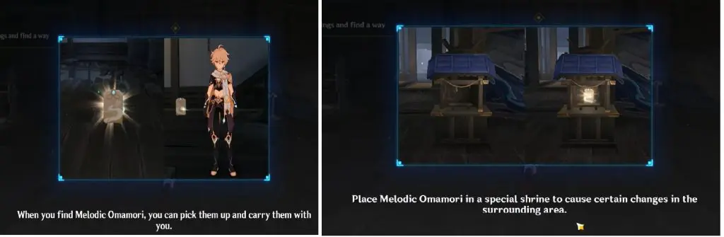 Once you pick the second Melodic Omamori, jump down the nearby hole and place the Melodic Omamori on the shrine to open the door.
