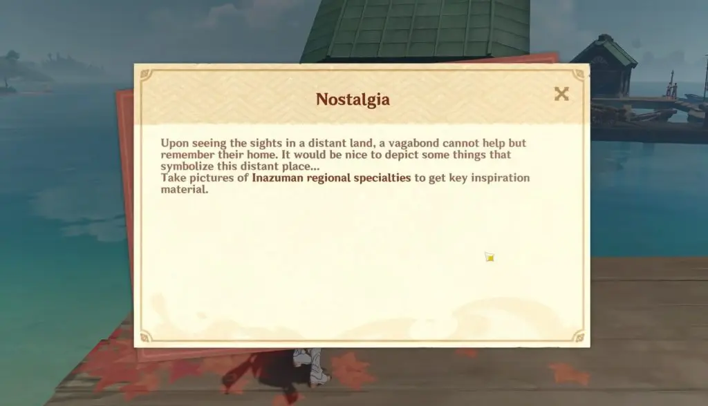 Once you have taken a photo of any four specialties around Inazuma, head back to Ritou and speak with the poet Ootomo.