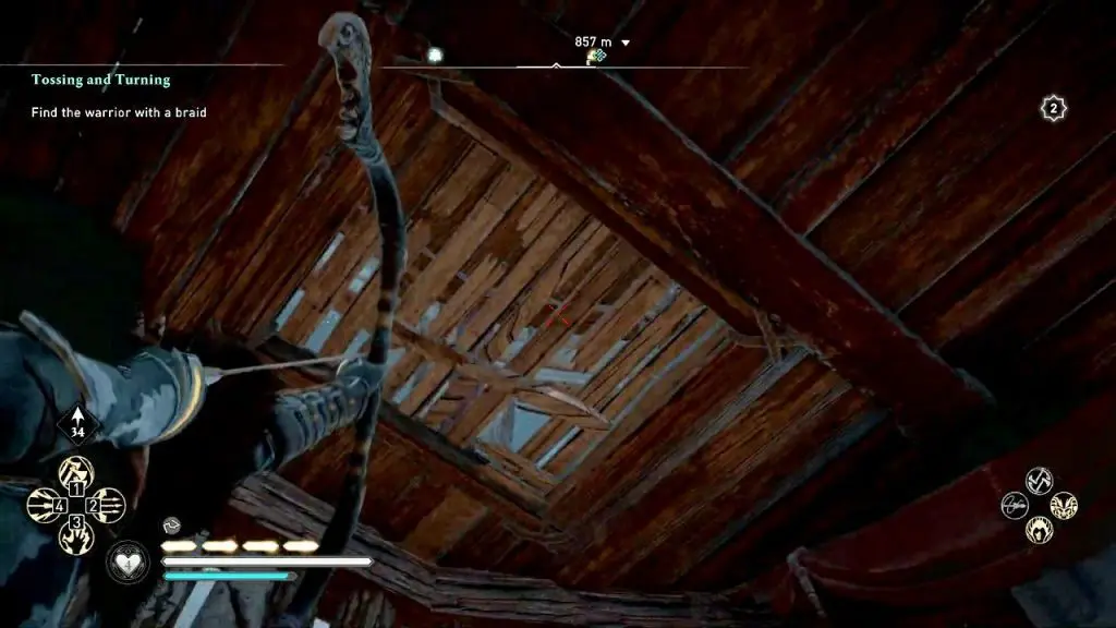 After getting off the ladder, destroy the wooden plants on the roof above. Then climb up the hole to reach the top of the tower. Talk to the old man on the top of the tower to complete the mystery “Haunting of Neist Point”.