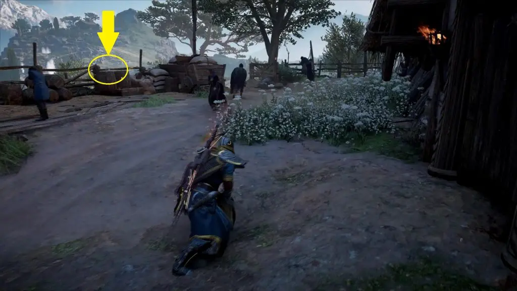 After collecting the wheat, go further west, then jump the wall and you will find another barley on top of a barrel under a small structure as shown in the picture below.