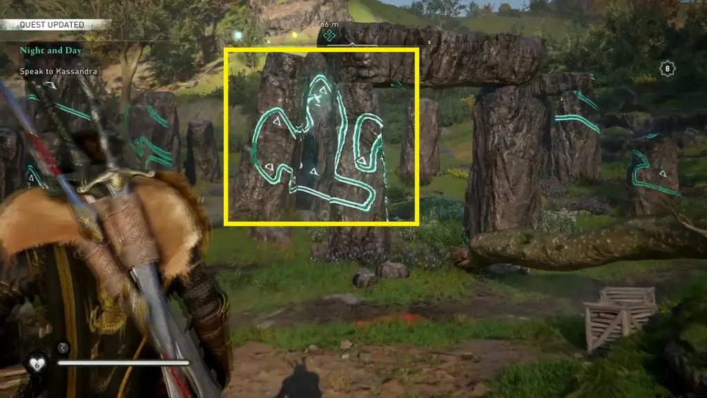 Now, climb up on the movable panel and see the standing stones till your vision forms the shape as shown in the picture below. This will solve the puzzle.