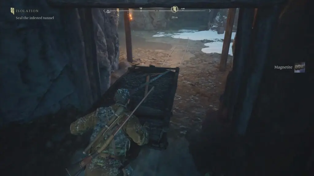 From the cave, proceed south to an outpost where the lift is out of operation.