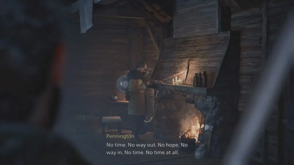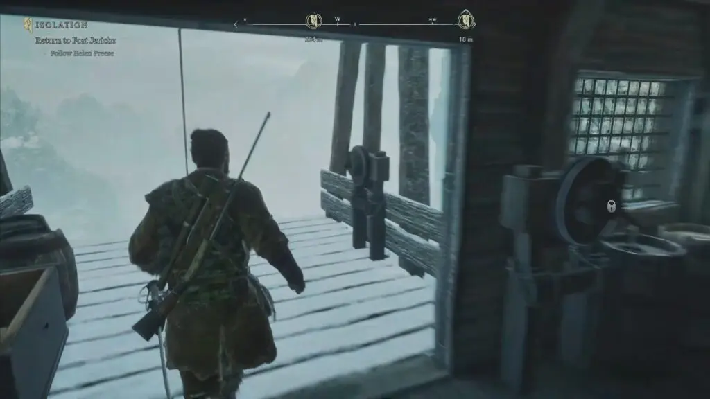 Make your way over to the rope lift and ride it down. Follow Helen to the gates of Fort Jericho.