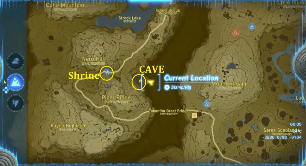 The Iun-orok Shrine is situated at the far western edge of the map within the Tabantha Frontier Region of Tears of the Kingdom. More precisely, you can find this Shrine inside the Tanager Canyon West Cave, which is located in the northern part of Piper Ridge.