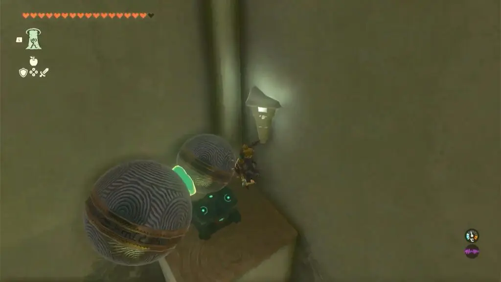 To access the chest, join two balls and position them beside the platform. Use ascend ability to climb on top of the balls to reach the chest, which contains Arrows (x10).