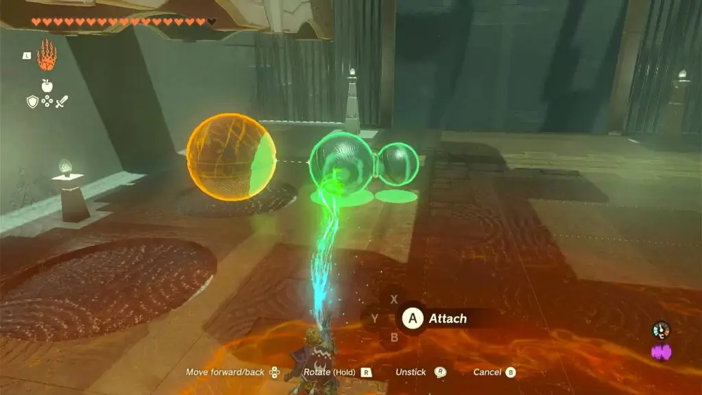 Regarding the target, the approach differs this time, as you won’t release the balls and roll them down the ramp. vertically stacked all the three balls one atop the other. maintain your grip on them using Ultrahand and descend the ramp while holding the balls.