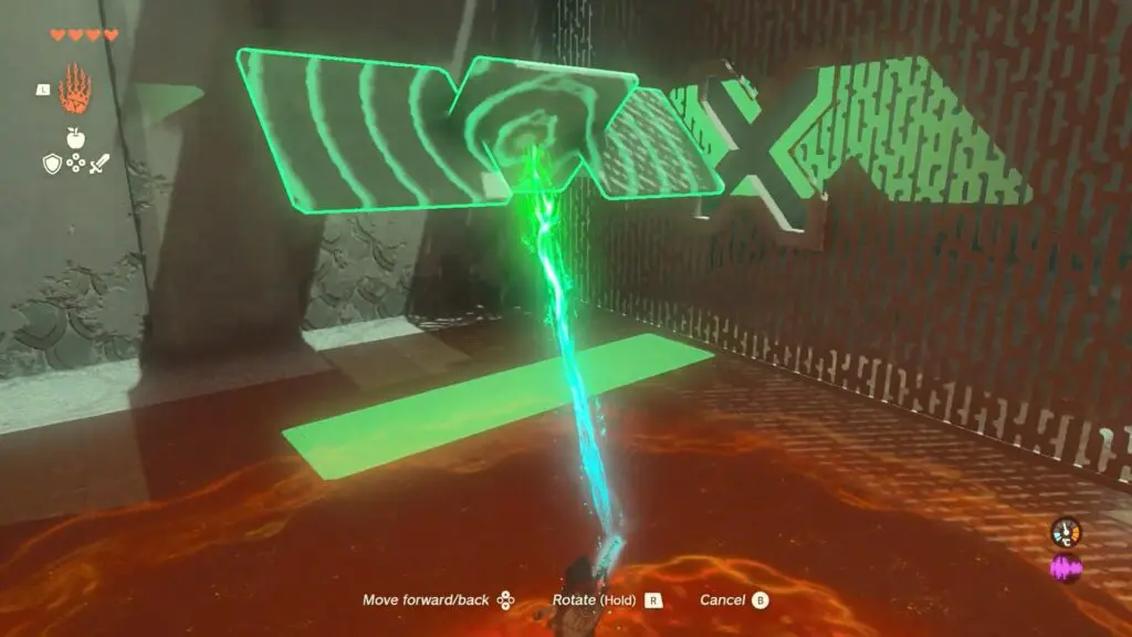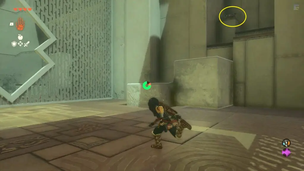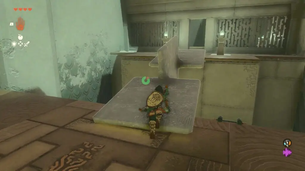 Go into the room to the left side after entering Jiosin Shrine. Use Ultrahand to lift up the platform and pass it to the main hall through the X-shaped hole in the wall. Here you don’t need to rotate the platform.