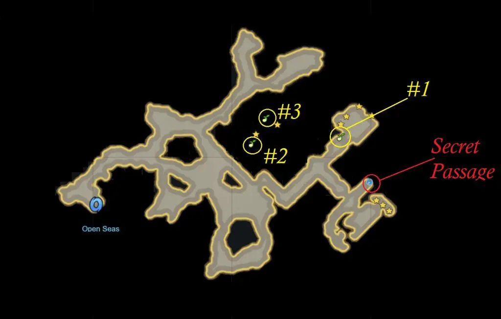 These two are located inside a room/jail that is accessible by a secret passage. The entrance to the secret passage is southeastern part as indicated on the map.
