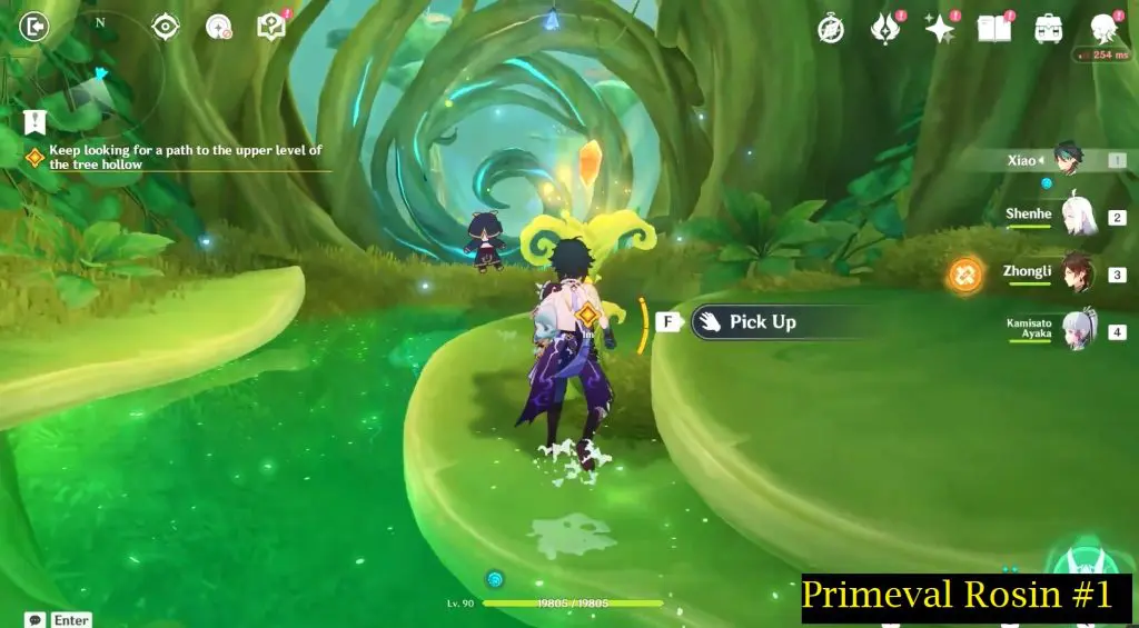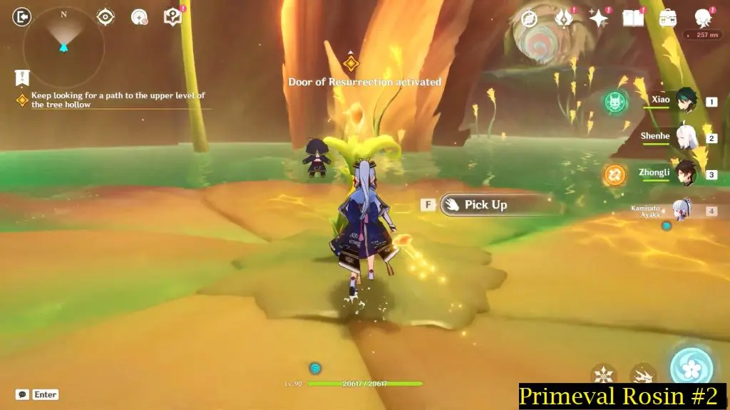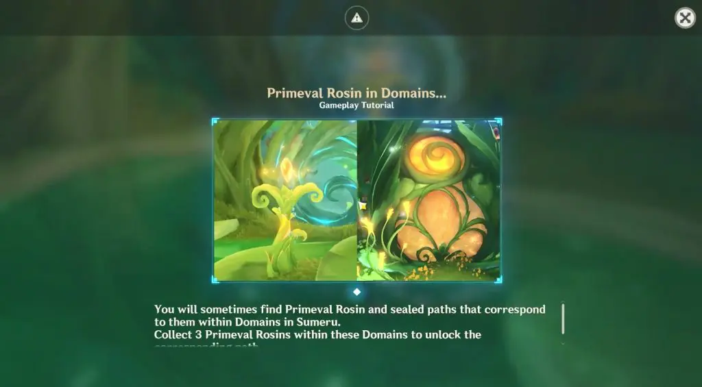 As you explore the new area inside the tree hollow players will come across a Primeval Rosin and a sealed path as shown in the picture below. As soon as you encounter one, the game will tell you how to unlock a sealed path using a Primeval Rosin. You need three Primeval Rosin to unlock the path.