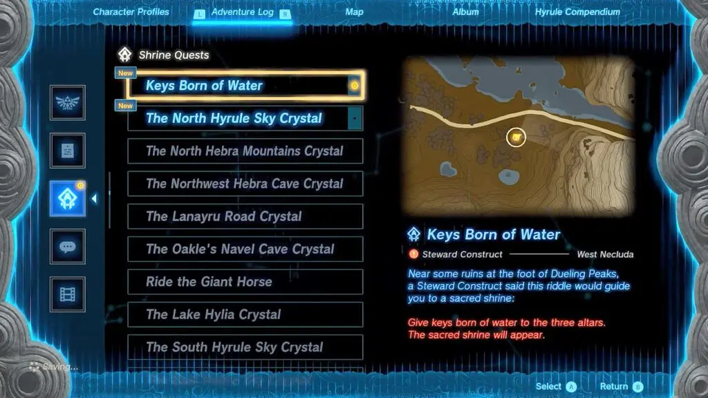This guide shows the complete walkthrough of the Keys Born of Water quest in the Legend of Zelda: Tears of the Kingdom game, released on 12th May 2023.