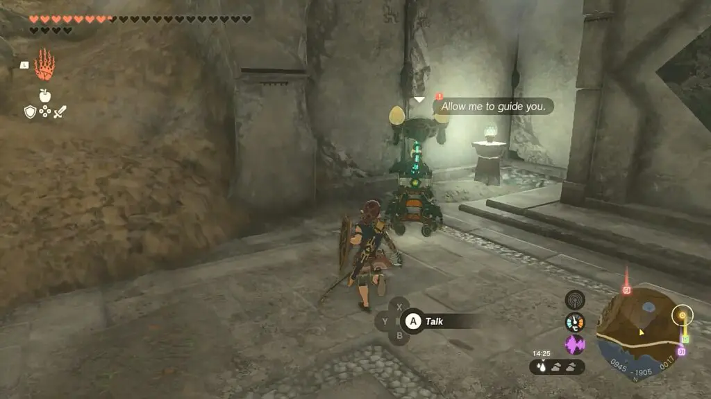 Enter the shrine and open the chest there to get a Big Battery. Then get the blessing to complete the shrine.