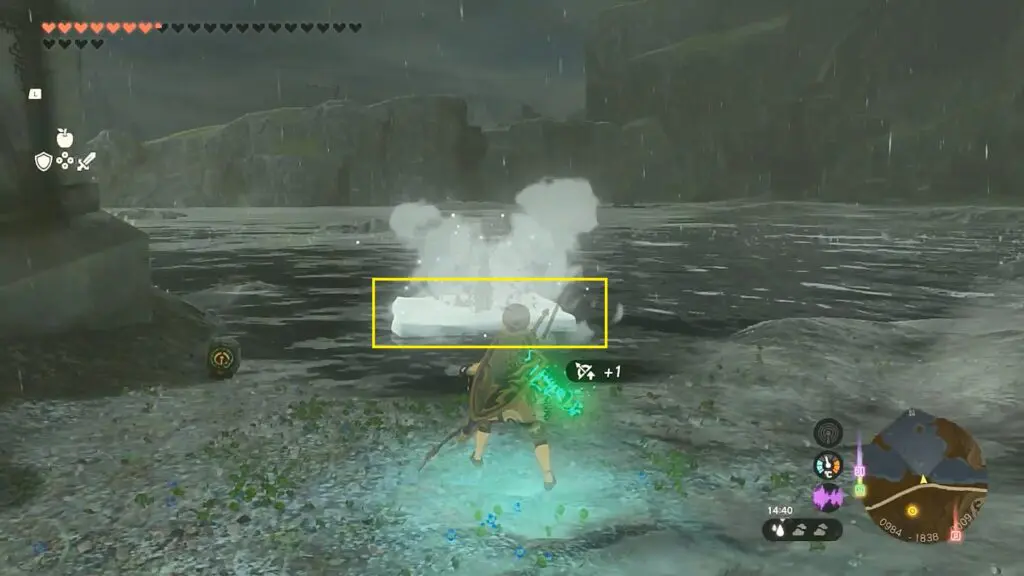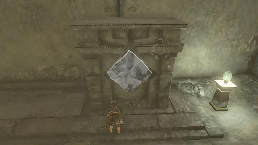 Go to the nearby river and throw an Ice Fruit into it to form an ice slab as shown in the picture below. Pick up the ice slab and insert it into the first altar as shown in the second picture below.