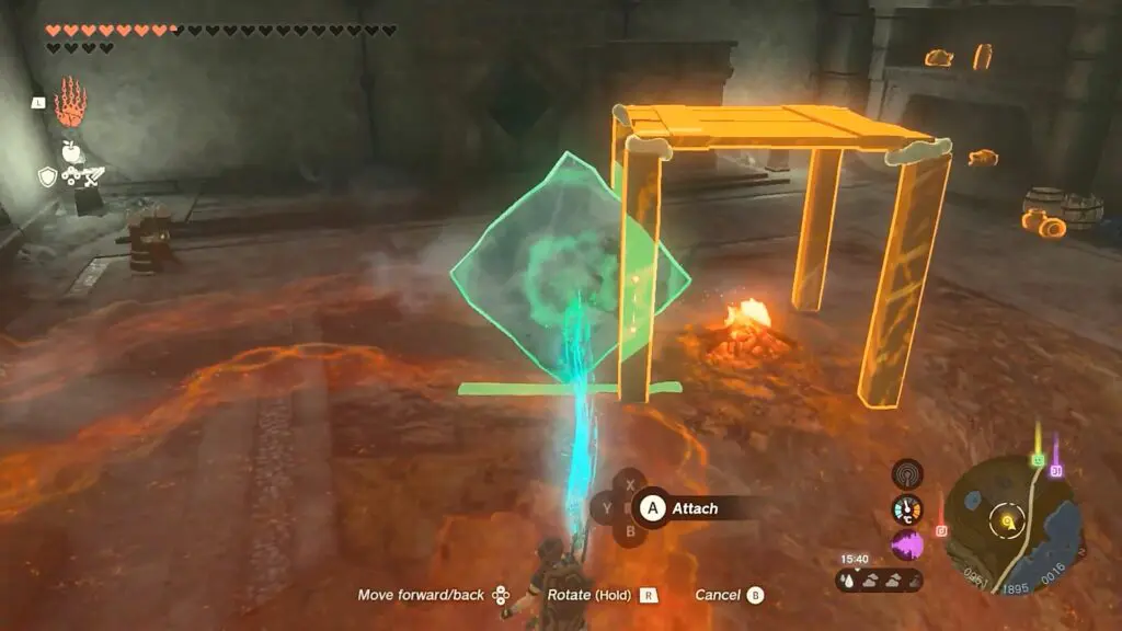 Go back to the river and throw an Ice Fruit into it to form an ice slab. Pick up the ice slab and take it to the campfire near the altar. Use the campfire to decrease the size of the ice slab as shown in the picture below. Then insert the ice slab into the second altar.