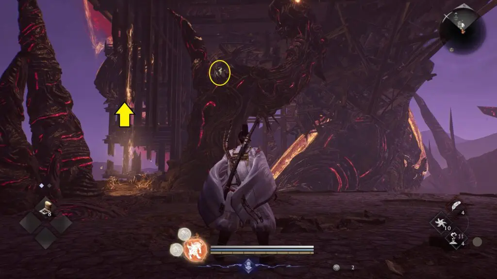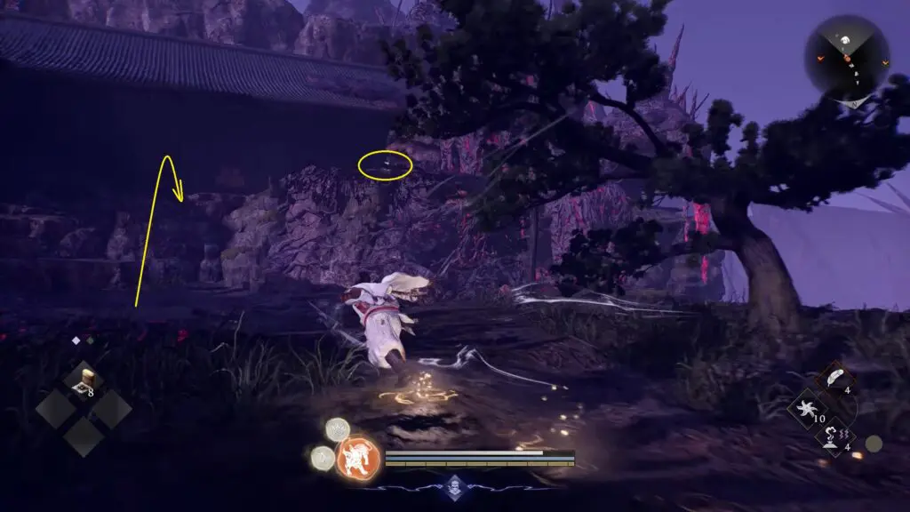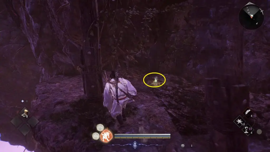Kodama #4 is found on top of the ledge shown on the map. Go to the marked location. Once you reach the area, look for a Spirit Vein close by.