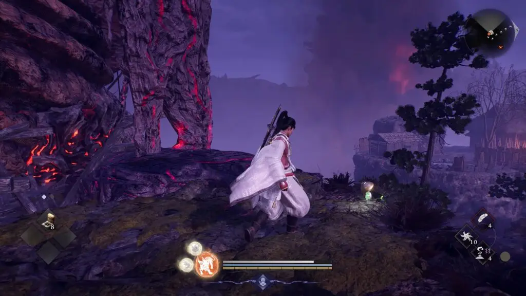 Kodama #1 is found in the western area of Kiyomizu. Start at the fast travel point and start to move south. Keep going until you see a raised rock ledge along the path. Look up, and you will spot the Kodama sitting on top of the ledge. Climb up to collect it.