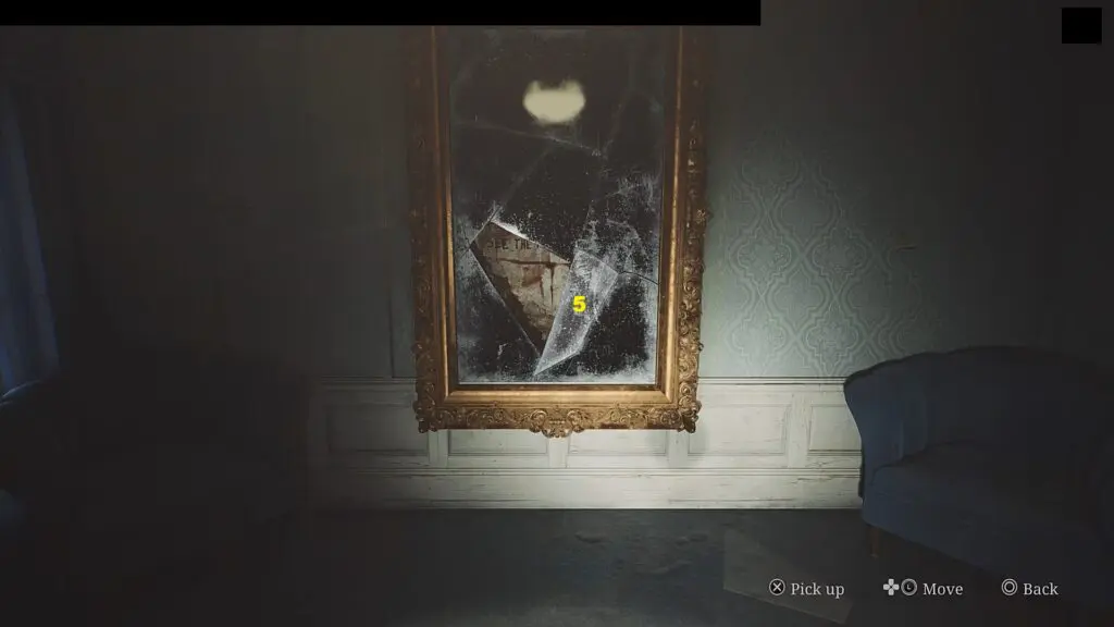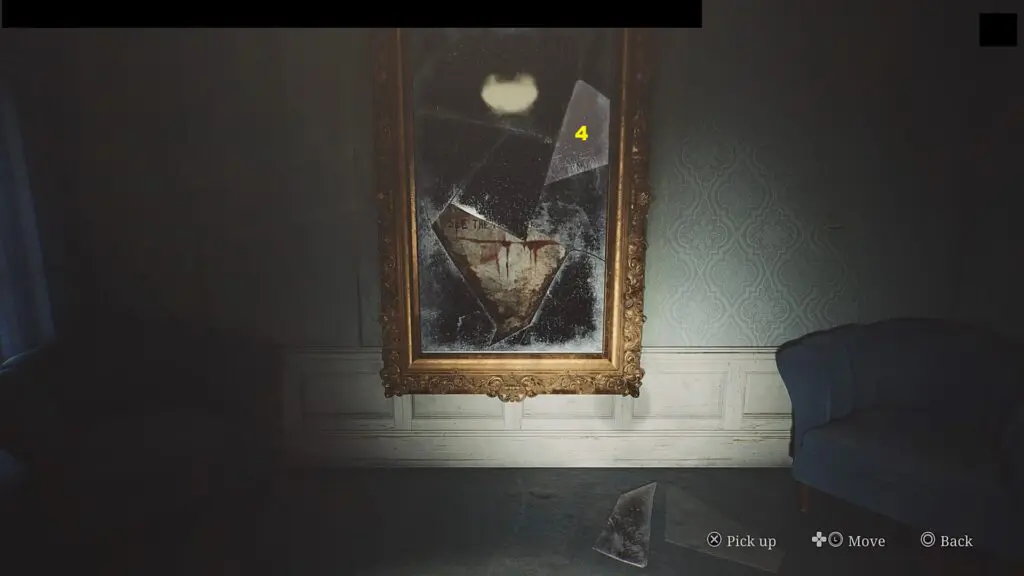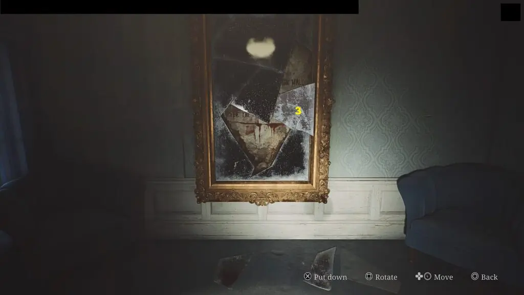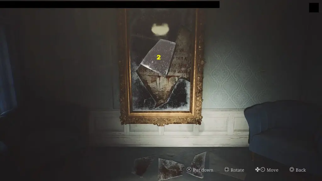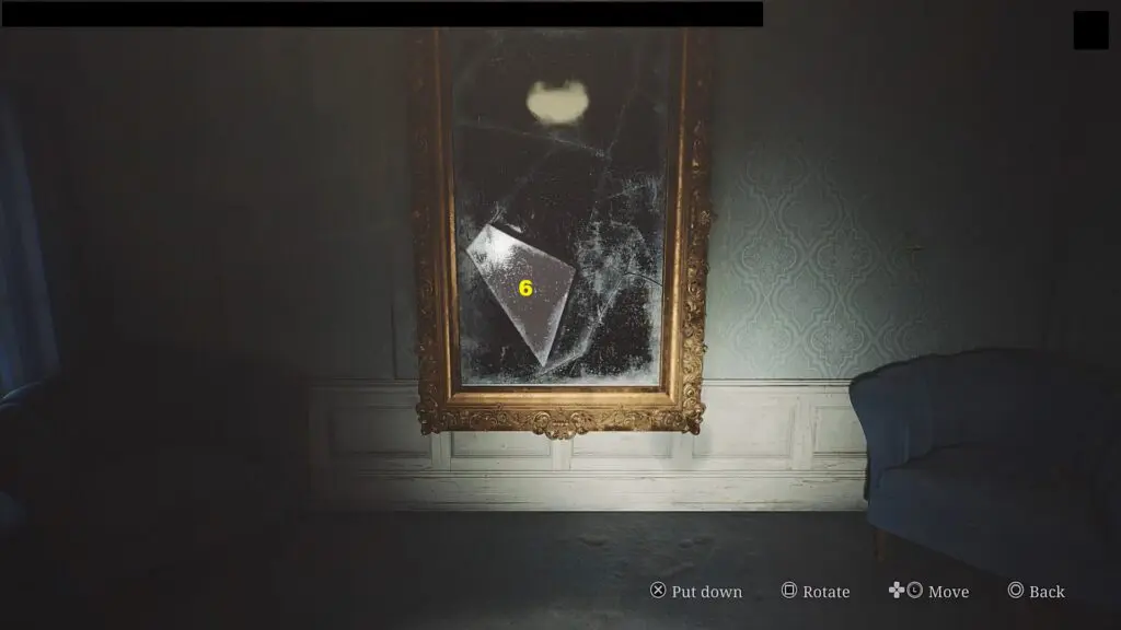 Now to go Room 202 as shown in the picture below to solve the puzzle. Five of the mirror shards will be lying in front of the broken mirror. The sixth shard is on the bed in the room attached to Room 202.