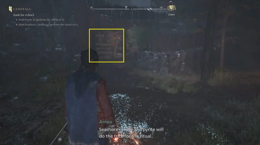 As the quest progresses you need to perform a ritual and for this, you need to collect Pyrite x 3 and Seashore Candles x 1.