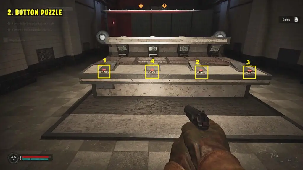 Continue ahead and after some time you will reach a locked room with buttons to open the door. Press the buttons in the sequence shown in the picture below (1-2-4-2) to open the door. This will open the door. Now proceed ahead.
