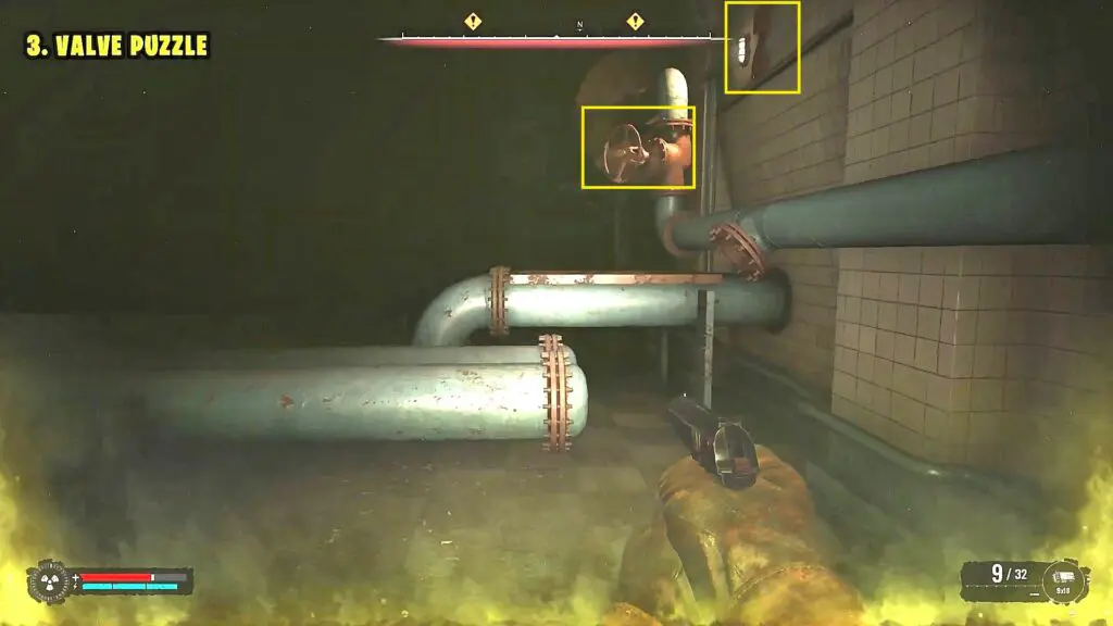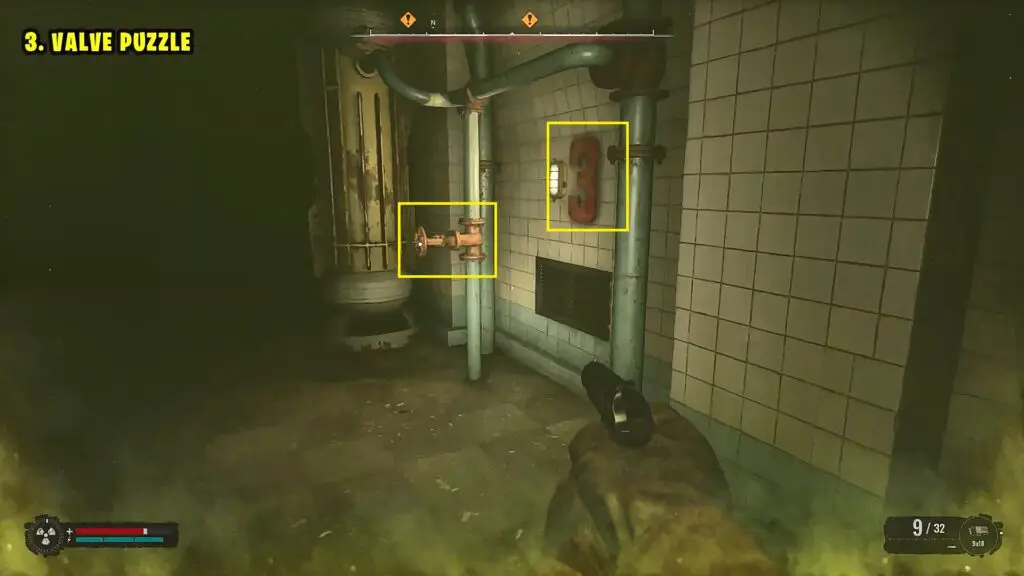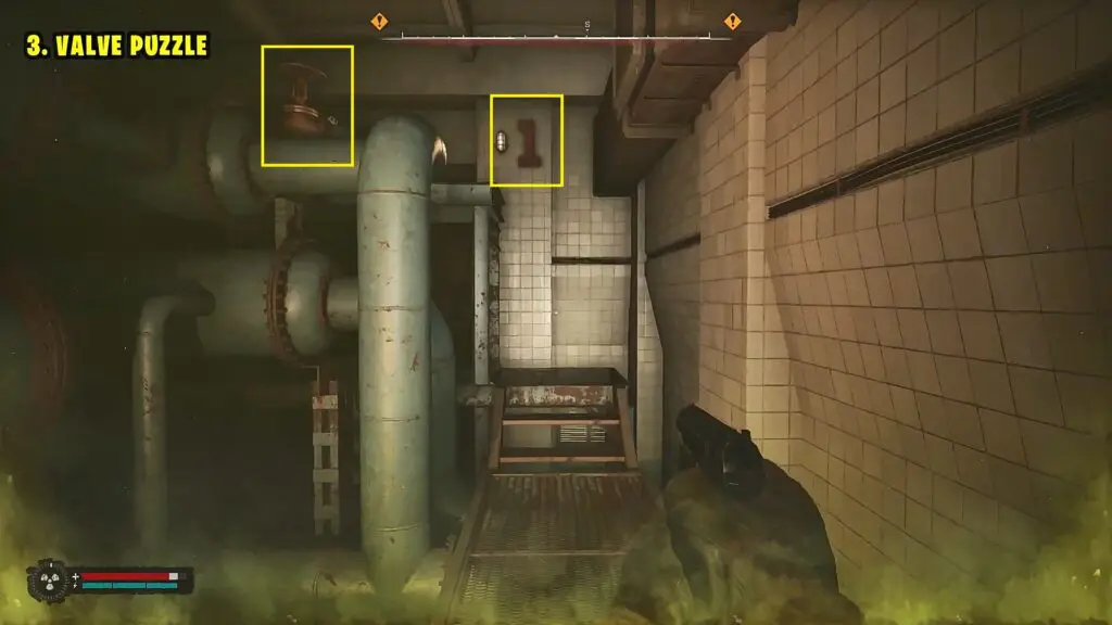 As you continue, soon you will reach another locked room with toxic gas inside. Here you will have to turn three valves in the sequence 1-3-2 (Shown in the pictures below). This will open the door. Proceed ahead and soon you will reach the Anomaly. Step into it to complete the objective.