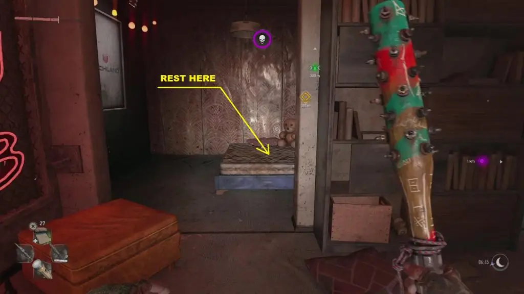 Go inside and keep going until you reach a room with a teddy bear kept on the bed as shown below. Rest on this bed.