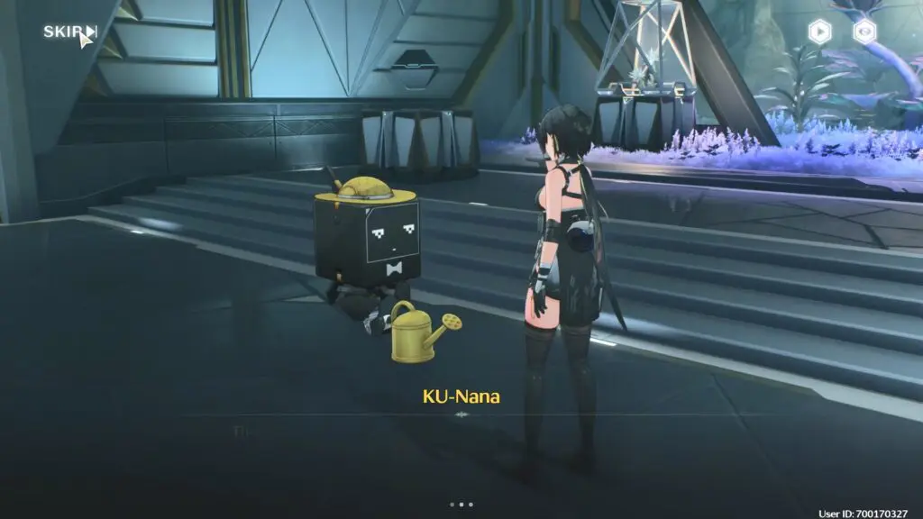 At the start of the quest, talk to the NPC Robot (KU-Nana) on the left side of the room. The Robot will explain that the Shorekeeper hasn’t visited the garden in many years and ask for your help in fixing Tethy’s error in the data hub.