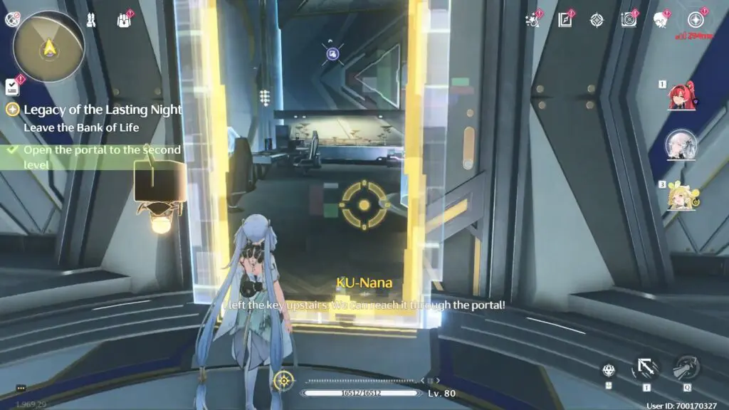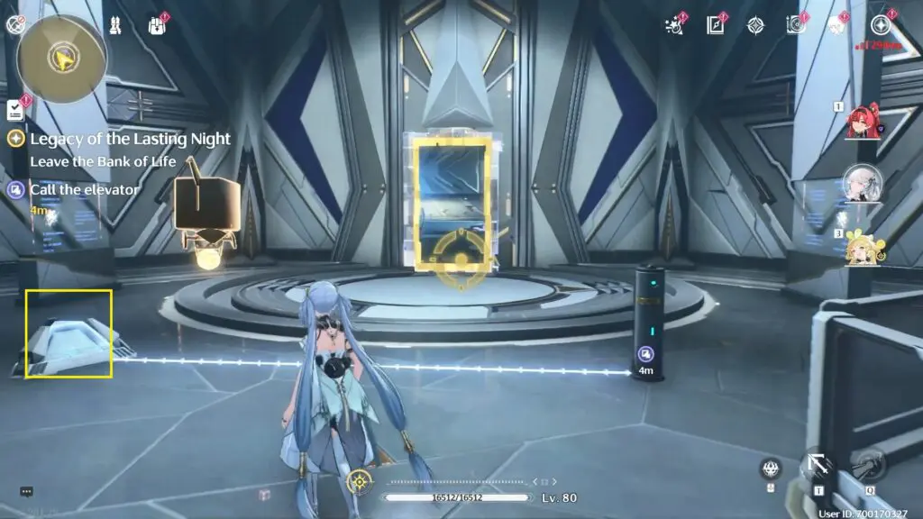 Go back to the previous room through the portal and pass through the door to reach the elevator. Interact with it to activate it, but the NPC will inform you that the elevator has malfunctioned.