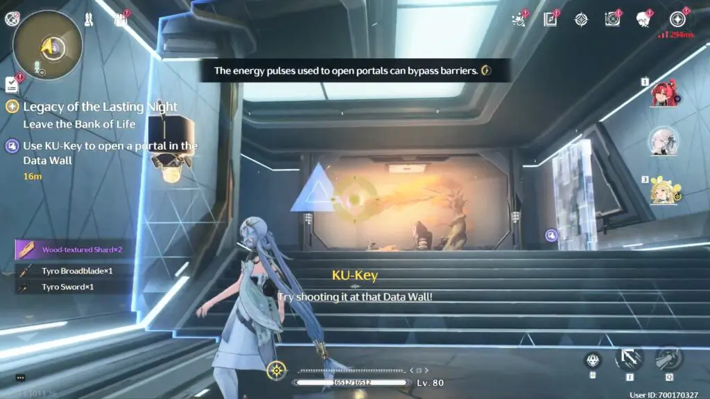 In the next room, interact with KU-Nana to receive Thetys’ terminal. This device can be used in certain underground areas of Black Shores to open a portal by shooting pulses at the Data Wall. Start by shooting a Data Pulse at the Data Wall to open the portal, then step inside.