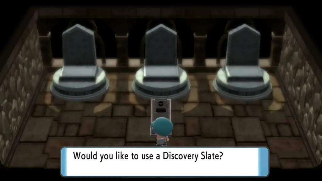 Once you have a Discovery Slate, go through the door on the other side of the room and enter the Discovery room in Ramanas Park. Place the slate on the pedestal in the Discovery Slate as shown in the picture below. This will make Registeel, Regirock, or Regice spawn. Keep repeating the process again to get the remaining two Pokemon.