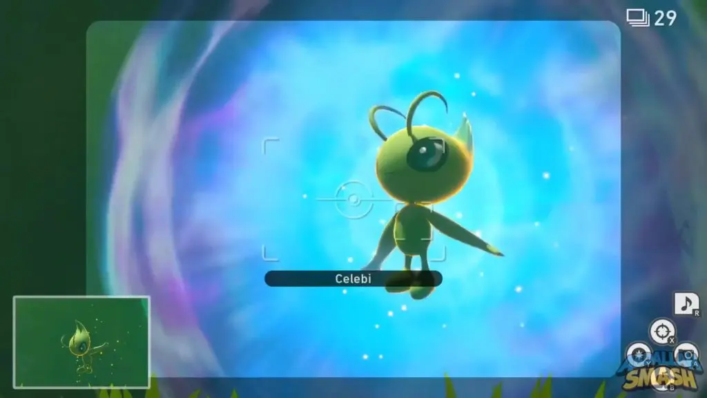 - Here you’ll see Celebi flying all the way across (it will be coming from your right side).