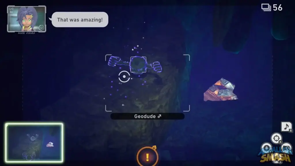 - At the bottom of the seafloor, press the X-button (to analyze) and you’ll notice a new path has been unlocked to the right. Enter the new path and head forward into Lugia’s den.
