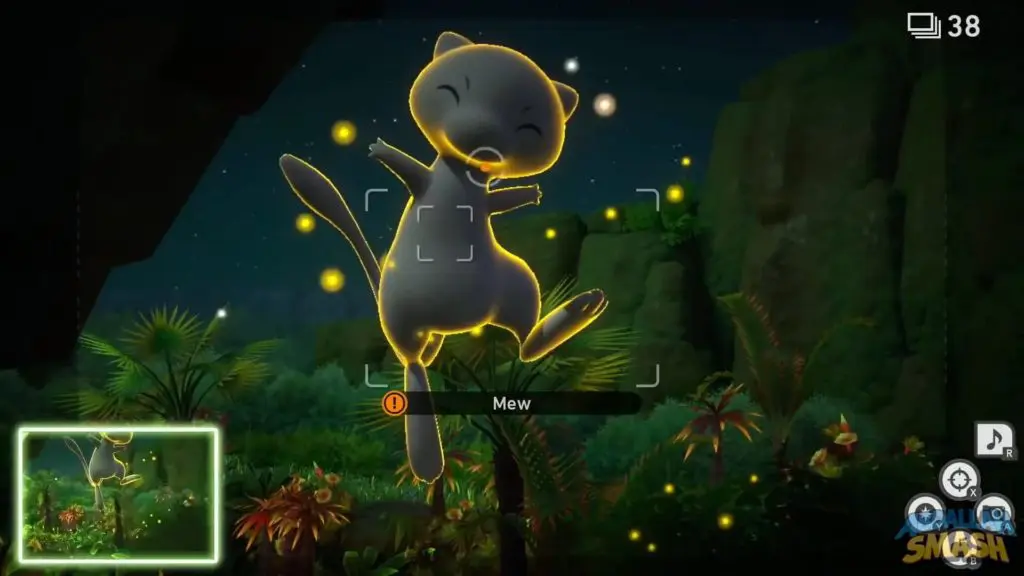 - Hit the pink sphere with a fluffruit. The sphere will vanish giving you an opportunity to photograph Mew.
