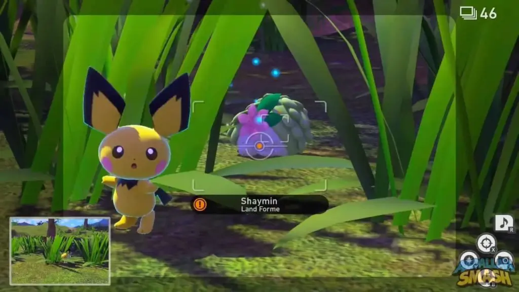 - To your left (near the lake) you’ll find Shaymin sleeping in the grass. Shaymin will be in-between Grookey and Pichu.