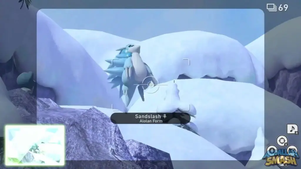 - Keep moving forward and the Sandslash will re-emerge on top of another mountain (to the left). Take another photo.