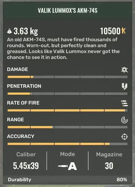 Valic Lumic’s AKM 74S can be found in a stash located on the top of the water tower during Warlock’s D’s quest.