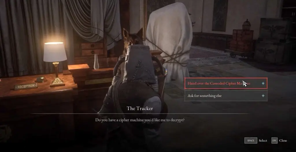 Once you’ve claimed the Corrupted Cipher, go back to the Tracker at Eventide Hotel and ask him to decode the Corrupted Cipher Machine. The Tracker will help decipher the Corroded Cipher Machine and point you toward a location known as the Ancient Ruin Excavation Site.