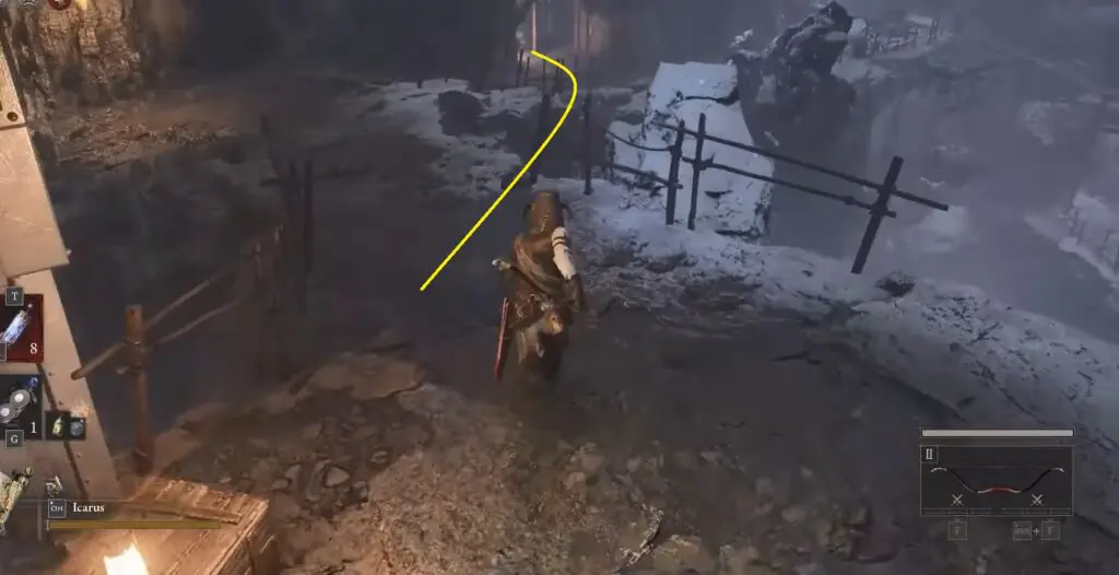 Starting from the Ancient Ruin Excavation Site, head down the slope to your left and descend the ladder nearby.
