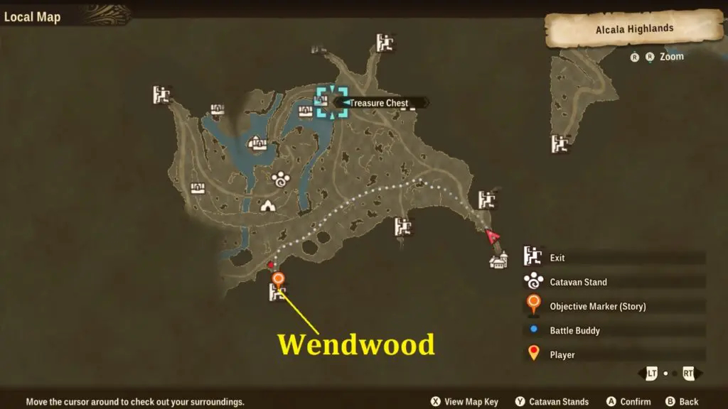 For the first objective, you need to reach Wendwood area to search for three missing kids, which is marked on the map as the main objective location. Since the area around the village was seen sprawling with monsters, you need to rush to first of Wendwood to bring back three kids. Wendwood area is located on the west of the village area. From Rutoh village exit head to the left direction and take the second exit to reach Wendwood. The location is shown in the picture below.