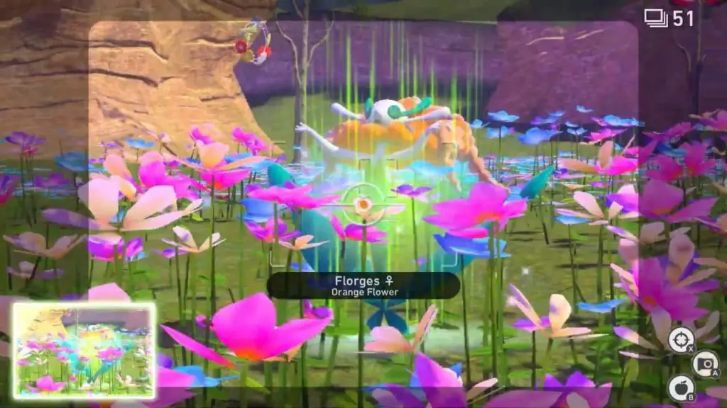 Professor Mirror will give you requests to do the ‘Livening up the flowers’ request. The request is to snap a picture of Florges gathering natural power from its surroundings