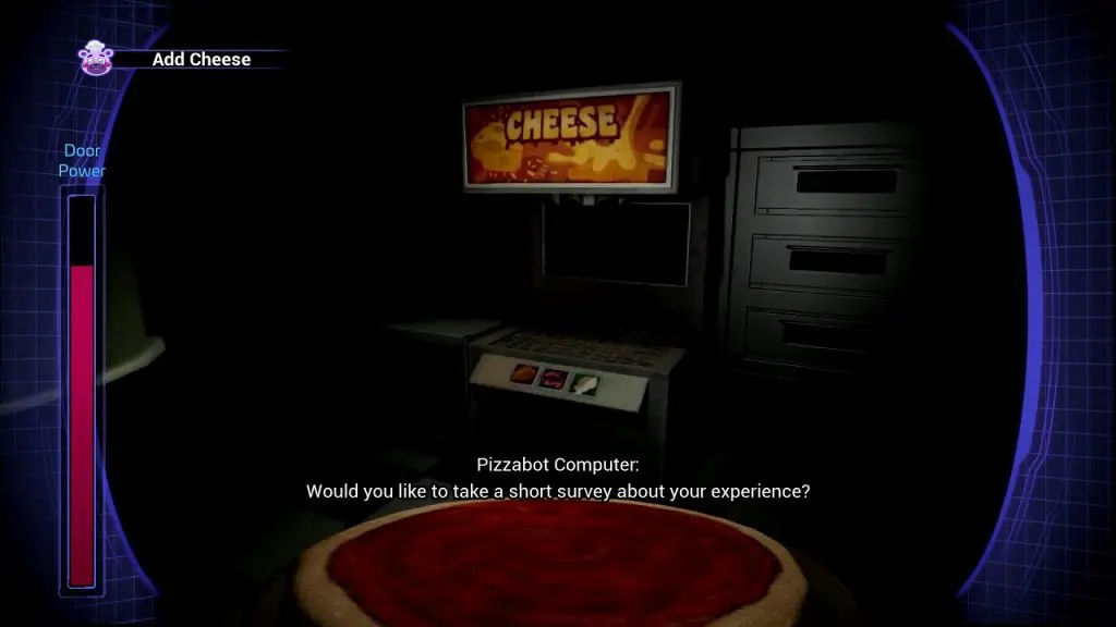 After collecting the security badge your next objective is to help Gregory and distract Chica by ordering pizza from the online pizza delivery system. Interact with the Pizzabot computer on the counter as shown in the picture below to take its control.