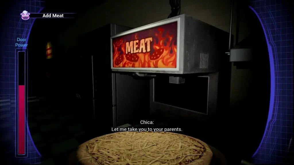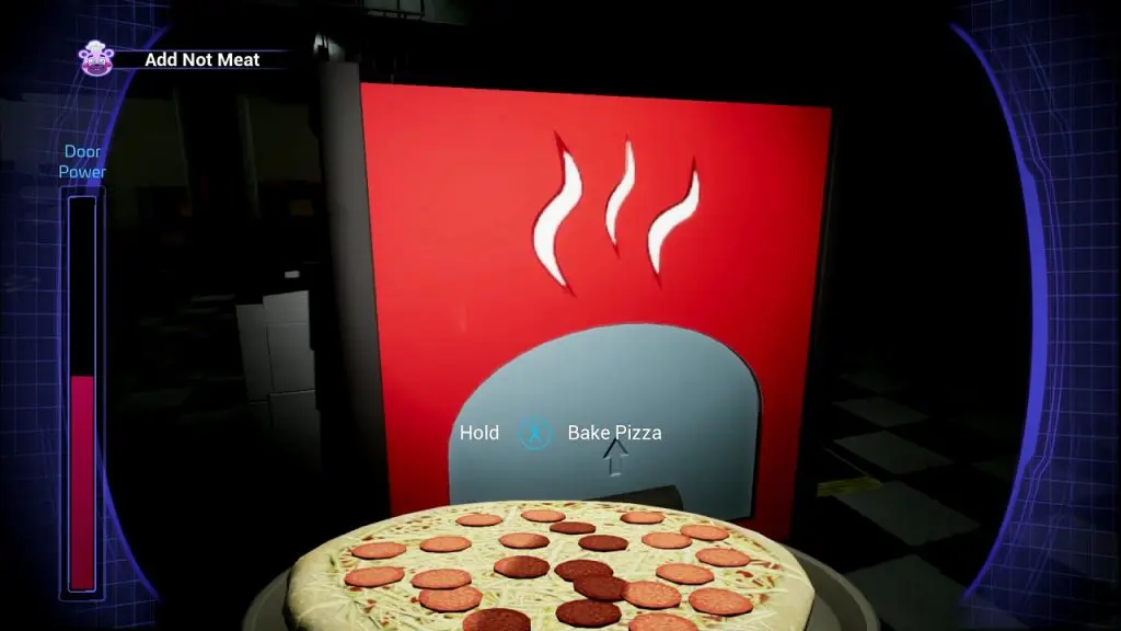 Add Not Meat: Go to the oven as shown in the picture below to bake pizza. Pick up the Pizza when it is cooked.