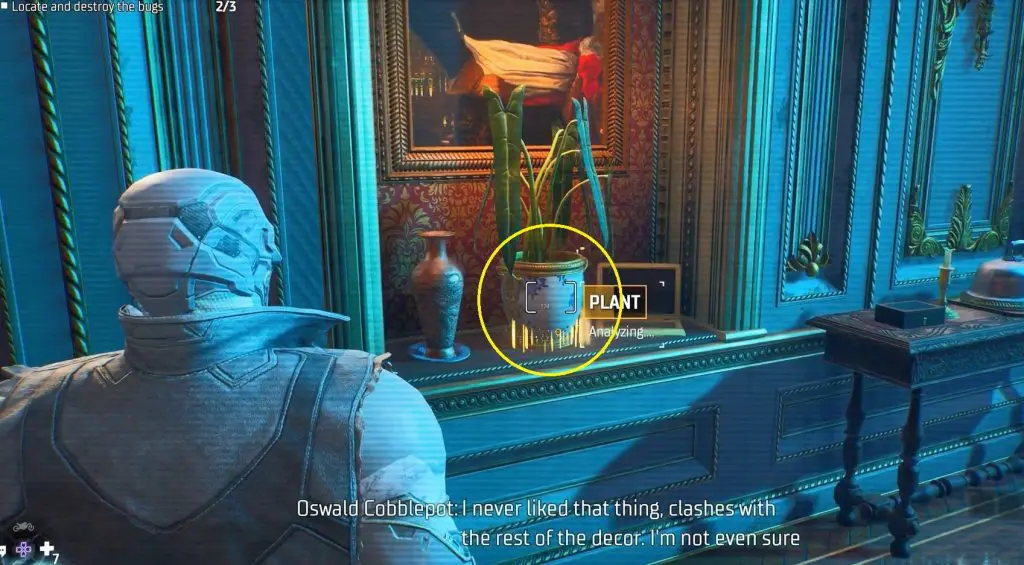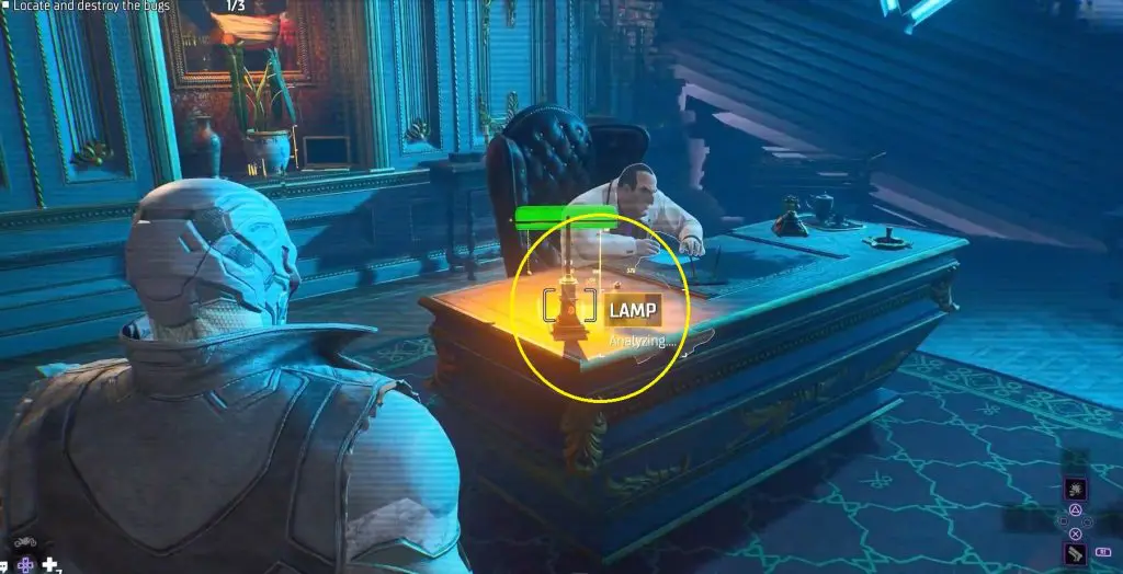 This walkthrough will show you how to complete the objective “Locate and destroy the bugs 0/3 ” in Gotham Knights Case 2.1. In this case, you will go to Penguin’s office and he wants you to find 3 audio bugs hidden in the room.