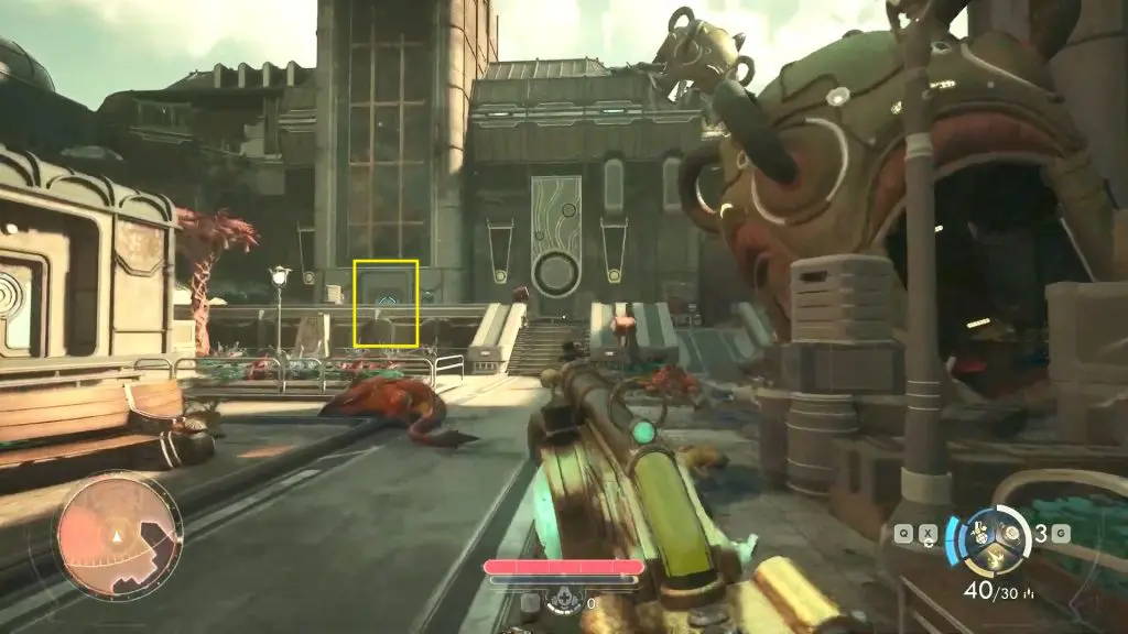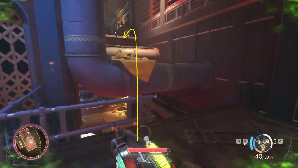 At the top, turn left and follow the path to the far end of the room, where two Raptidon Spitters will attack. Defeat them, then look to your right to find a set of pipes you can climb to reach the fourth floor.
