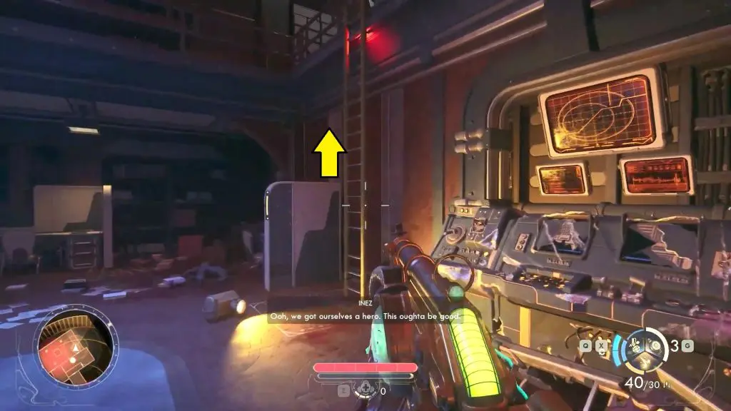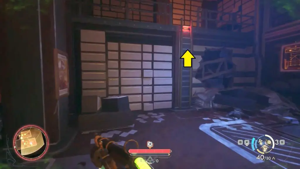Once inside use the ladder on the right side of the room to climb up to the second floor.