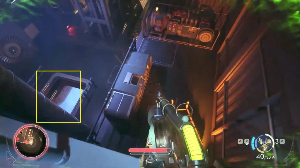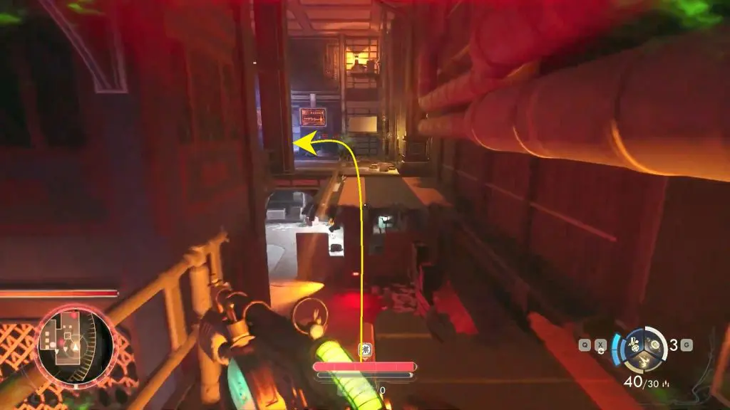 Once on the fourth floor, follow the walkway until you reach the end. Then, drop down to the lowest level and jump into the open vent below.